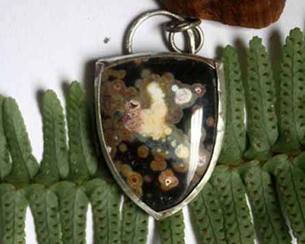 The orbicular inclusions characteristic of ocean jasper form around microscopic nuclei (such as bubbles or sand grains) that serve as anchoring points for successive mineral deposits. These circular, often concentric patterns create hypnotic designs resembling eyes or waves, reinforcing its symbolic connection to the ocean.